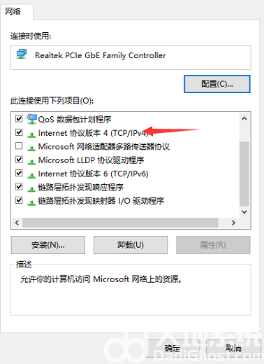 4.鼠标右键选择【属性】,我们找到【internet协议版本4(ipv4)】进入该页面。