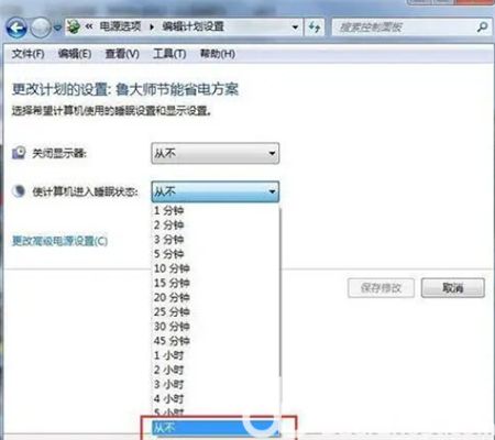 4、点击“使计算机进入睡眠状态”下拉菜单,笔记本的有电池台式机应该就一个电源。