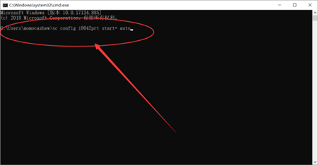 2,在命令行中输入“sc config i8042prt start= auto”并回车。