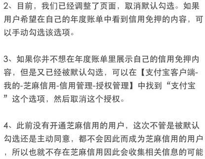新浪微博岳屾山表示:这个账单的查看和《芝麻服务协议》没有关联性,所以你选择取消同意,依然能够看到年度账单。但如果你没注意到,就会直接同意这个协议,允许支付宝收集你的信息包括在第三方保存的信息。