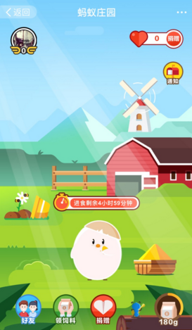 继蚂蚁森林种树捐树后,支付宝又在APP客户端中推出了蚂蚁庄园爱心游戏,用户可以领养喂小鸡。