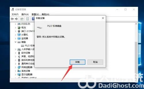 5、win10系统将弹出卸载设备警告窗口,继续点击卸载按钮,等待重启。