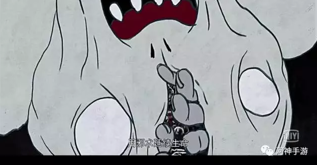 在这样的混乱之中,绝望的人们总是会寻求最极端的手段自我救赎,而魔古道便是在受灾最重的启明村中兴起。画面中呈现的绝望之人,痛苦之中不顾他人,义无反顾的扑向魔教首领。着绝望的情景在夸张的画风下,更显恐怖。