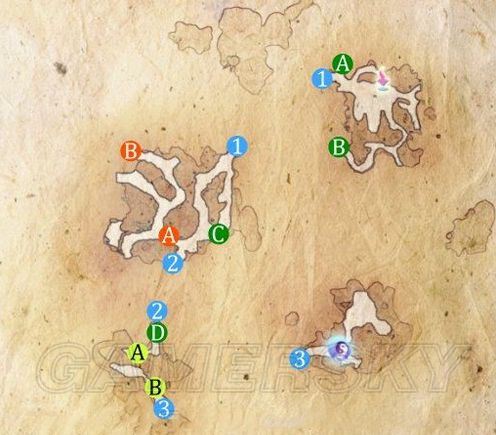 通过传送点2前往岛三,开启绿色机关D,传送点1开启
