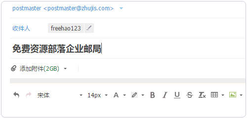 2、这是万网免费企业邮箱的写信界面,和一般的邮箱没有什么不同,附件最大可以添加2GB,不过一个邮箱的存储容易是5GB,平时写信时还是少用点附件好。