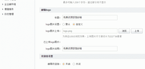 3、在系统设置中可以为你的企业邮箱添加简介、设置邮箱Logo、欢迎信等等。(点击放大)