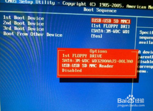 当进入CMOS界面后,进入“Standard CMOS Factory”(基本CMOS设置)界面,选择“First Boot”为“Removeable Disk”或“USB”即可。
