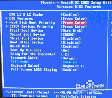 高级BIOS设置(Advanced BIOS Features)界面,首先选择硬盘启动优先级:Hard Disk Boot Priority,如图: