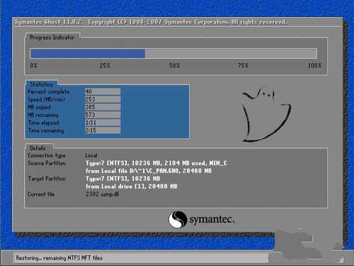 接下来系统就会重启,重启后就会出现下图那样的界面,什么都不需要做,耐心等待进度条走完即可。