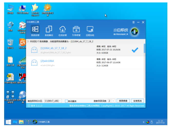 2、选择想重装的系统镜像,然后点击下一步。