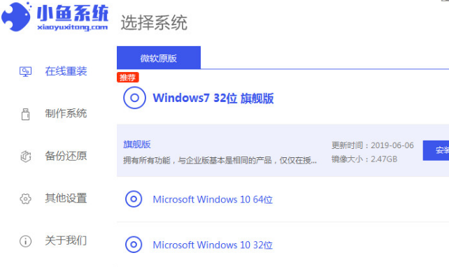 1、先备份好电脑里的重要资料,然后点开小鱼装机系统,选择对应的系统安装。