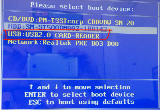 4、u盘插入需要重装的电脑上,接着重启电脑快速断续的按启动热键进入快速启动界面,我们选择带USB开头的u盘启动项回车键进入其中。