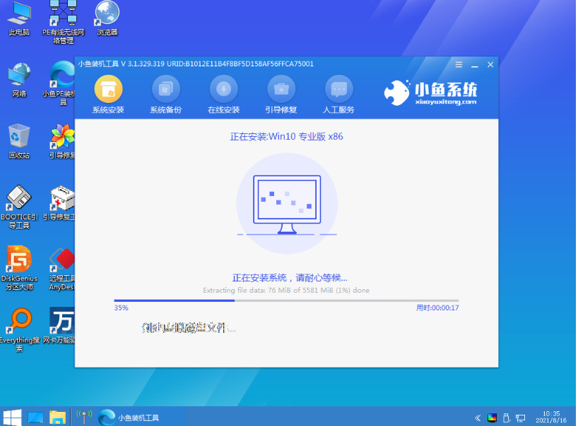 5、来到pe系统后,小鱼装机软件自动安装系统。