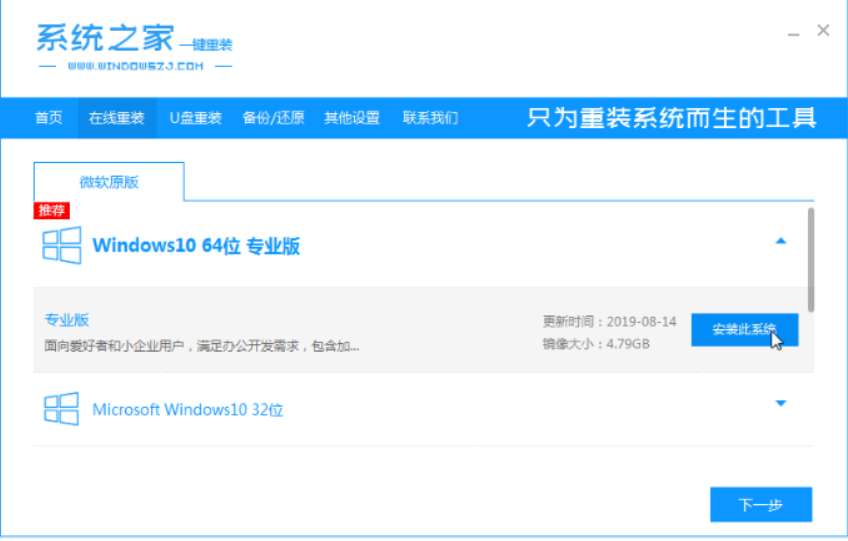 1、.下载系统之家重装软件并打开。再选择在线重装系统。