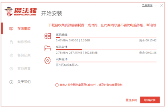 1、电脑里下载安装并运行魔法猪一键重装系统软件。你选择需要安装的系统单击开始安装。