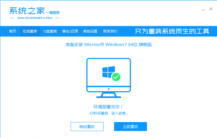 方法二:使用系统之家软件的在线重装功能完成win7系统安装