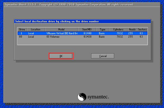 12、接着点击需要还原系统的物理磁盘,选择完成后点击ok按钮。