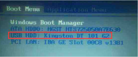 4、将U盘插入需要修复的电脑上,按下电源键,迅速敲击启动热键,弹出boot选择界面,选择USB选项,回车。如果启动菜单找不U盘,建议参考这个bios设置U盘启动教程。