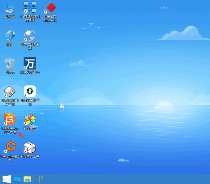 3、设置好U盘启动后,保存重启电脑进入01项pe界面后,选择DISKGENIUS分区工具。