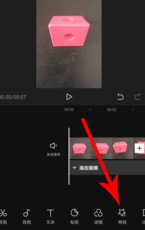 1、现在大家如果想设置“三屏”的效果,那么我们就需要通过“剪映”APP里选择顶端的“创建项目”按钮,唤起编辑界面并且点击右下角的“特效”功能。