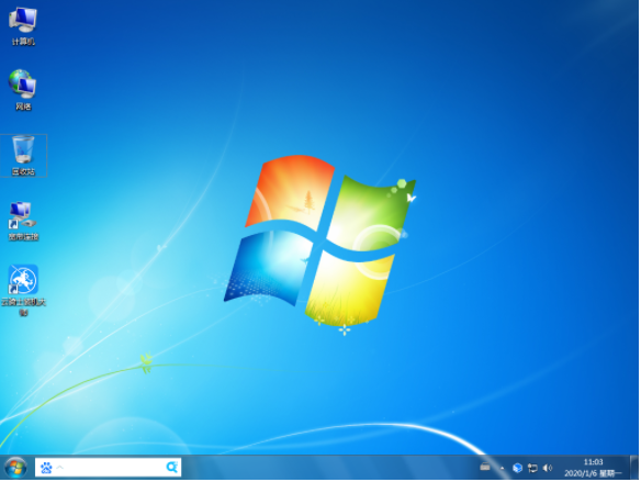 9、接着无需操作,重启电脑直到进入新系统桌面即完成重装。