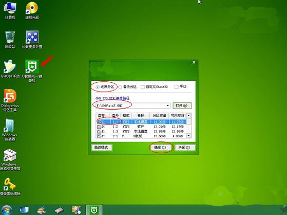 第五步、在PE系统中双击打开软件,保持默认的设置,选择安装在C盘,确定,如图;