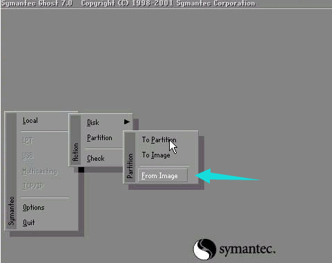 选择菜单到 Local(本机)--Partition(分区)--From Image