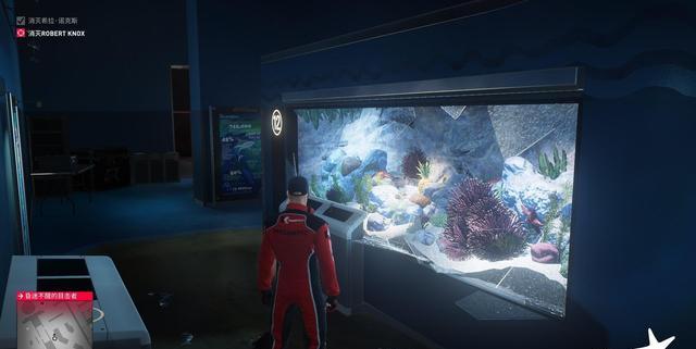 然后再把目标给拖到这条大鲨鱼的下面,用手枪打掉鲨鱼(这里要记得提前将海洋馆里的两个保安给放倒。)即可完成挑战。