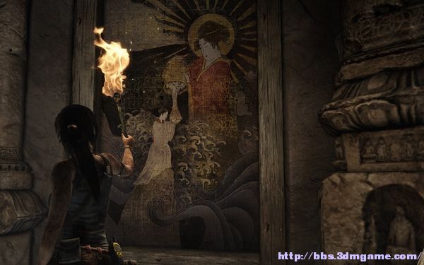 上楼梯暗杀一名敌人,然后朝走廊末端(地图2)行进,这时突然跳出来一名信徒,解决他后从左侧墙壁爬上去,落身到一间大厅。左侧墙壁上有面旗帜,拾取地上的提灯扔到上面烧掉它。由顶部的窗户(3)爬到隔壁屋子,旋转右边燃气管路的阀门,结果阀门发生断裂,房间里燃气弥漫,前面屋子里的家伙正奋力的砸玻璃,想要抓到萝拉。由窗户爬回之前的大厅,从地上拾取提灯从窗户扔回去,结果发生爆炸。