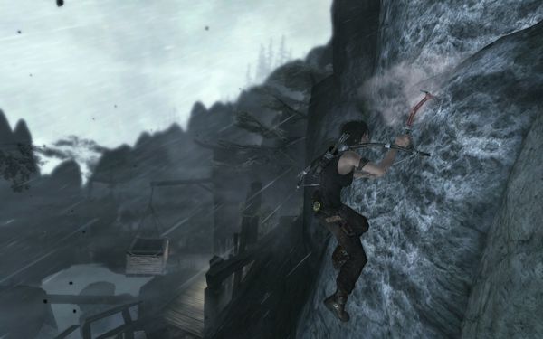缆车突然停在半路上,朝旁边的铁塔射出绳箭搭成索道滑过去。攀竖梯至上层,滑索道至大型平台与敌兵展开战斗,其间一名重机枪手将平台射翻,萝拉一路攀爬,然后滑索道,在经过其它索道的时候及时落下去。掉落水中,用霰弹枪轰开路障,最后流落到船难海滩。