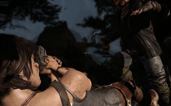 倒缚双手的萝拉离开俄国人的营地(地图1),利用墙壁躲避巡逻的敌人,跑到一间小屋里(地图2),结果被俄国人的首领发现,这家伙色心大起搂腰亲吻,按QTE指令摆脱,先是肉搏键F两次,再互动键E开枪将之射杀。此时挣脱了束缚并拿回弓箭,拾取新武器手枪。平定惊恐的心情继续行进,过木桥(地图3)后听到男子的叫声,进到院落看到地上倒伏着男子的尸体,拾取旁边的弹夹射杀附近的两名敌人,搜尸获取弹药和材料。