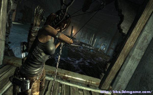 找到营地:漫淹实验室,先到楼上启动控制台,外面有电流传到水池里。回到楼下用控制台打开大门,得想办法穿越这片水域。首先将码头缠布的木桩烧掉,再跑到右边用霰弹枪轰掉木栅,站到屋里用绳索将码头的木筏拖过来。跳到木筏上,转身往右跳到屋外的平台。再朝空中的木架射绳箭,将它拖下来,导电的金属升起,这样萝拉有足够的时间通过前方的水域。