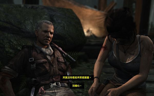 进到洞里拿到背包,回来路上遭到狼只的扑击,用QTE解决。离开山洞,由崖边往下面的屋顶跳,拾取秘宝。返回营地救醒罗斯船长,他让萝拉前往无线电塔发送求救讯号,并交给萝拉新装备-攀爬斧,用它可以攀援凸凹不平的岩面。