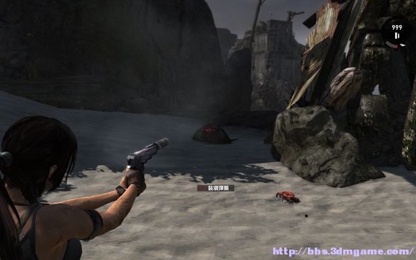 往前走到倾斜的甲板上(地图9),看到海里有颗水雷忽隐忽现,开枪引爆它,再往船左边望找到另一颗水雷。滑索道返回码头(地图10),回到海滩的营地,发现艾力克斯不见了。这时惠特曼博士跌撞的跑回来,萝拉对其产生了怀疑,动身去找艾力克斯,约拿将新制作的一把弓送给了她。