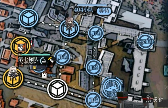 第五回合,空降队飞过来或者从指挥部部署走到左侧机场处,将404队换位到控制台,设置等待。