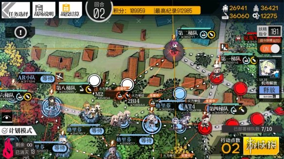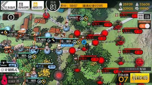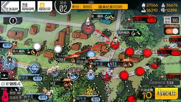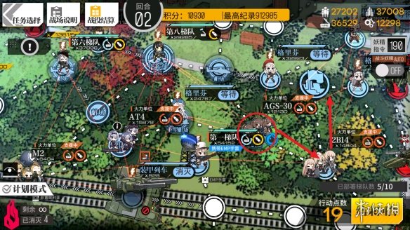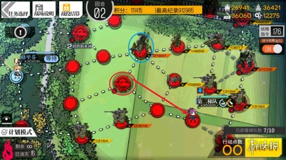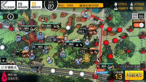 嘲讽双炮队,五六回合驻扎清理右侧机场,打狗效果较差,建议直接空难队换妖精去刚。
