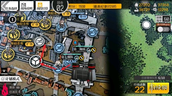 2.四队一路上走打掉三个怪,在红框区303前面布雷并和汤哥换位,空降队前走一步换位至雷处,剩余一个行动点。