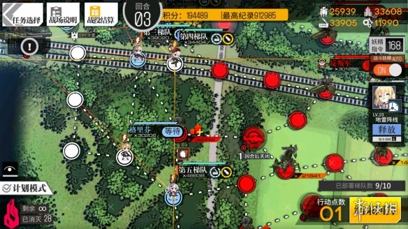 2、打309必然可以白嫖1个EMP,若第四回合没换线,则301走到原309位置可再白嫖一个EMP,于是无雷也可在第七回合完成路障清扫, 当然我选择最后一回合收割残血313 。