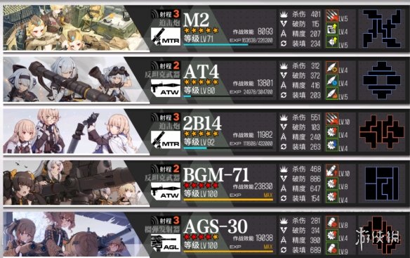 重装优先度大致为 2B14-AT4-M2-AGS,所以本次使用的基本可以看做未迭代一般练度重装。