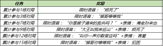 活动期间参与对局即可随机获得西游系列限时语音和西游系列限时表情!