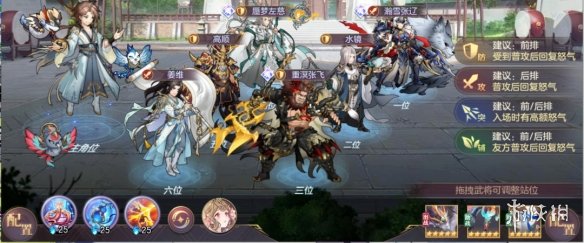 ③完美阵容:瀚雪张辽(乐进护法)+水镜+重溟张飞(关羽护法)+蜃梦左慈(华佗护法)+高顺(5火带专武)+姜维,阵容如图所示,所有武将均需要5火。