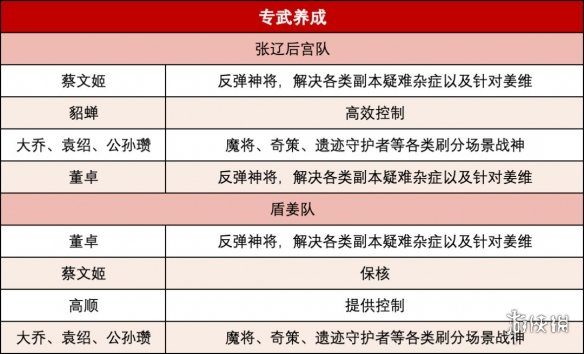 ②中期阵容:姜维+水镜+蜃梦左慈+瀚雪张辽+董卓+蔡文姬(5火带专武)孙鲁育。