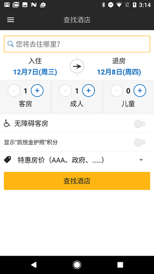 - 应用所在位置,或依据大城市、详细地址或是飞机场开展检索酒店餐厅