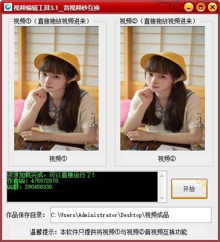 视频编辑工具(音视频秒互换)是一个音视频秒互换软件,支持一键互换视频的音频声音,并且还能进行多个视频的音频互换,特别的方便,操作非常便捷,轻轻松松就可以将音频声音换掉。