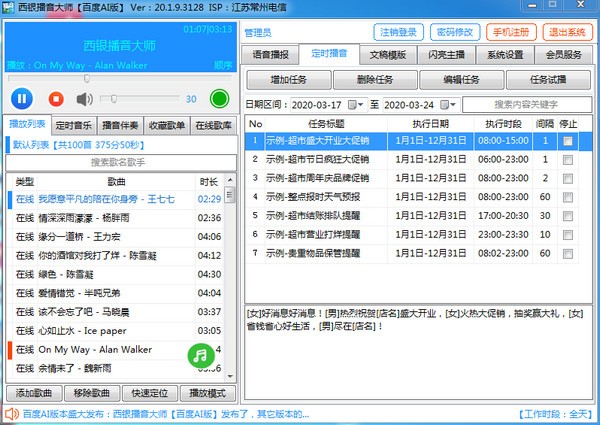 定时循环播放,到点就播,一次性设置整年的节日播音任务。