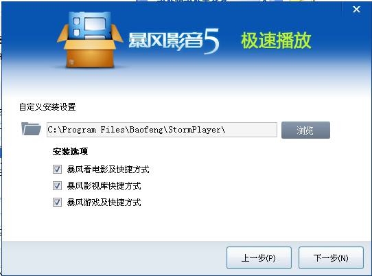 安装选项中自选时候安装暴风看电影、暴风影视库、暴风游戏。