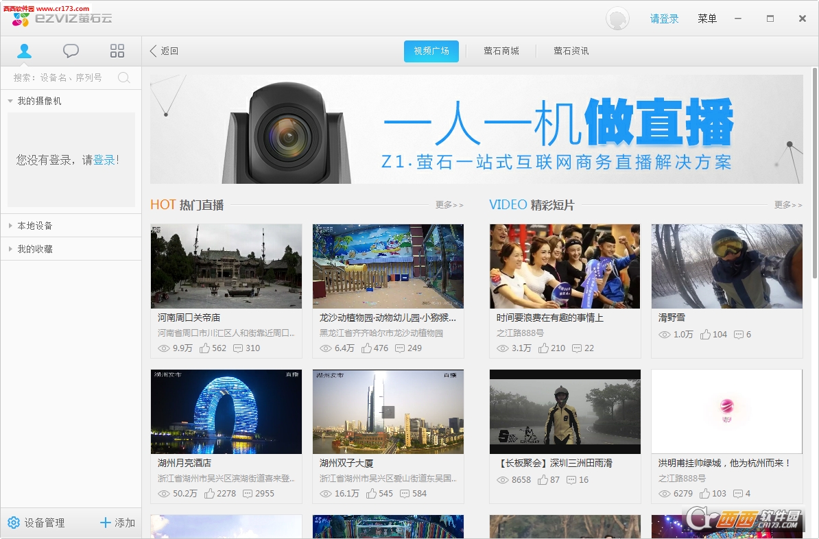 萤石工作室电脑版是萤石运动相机配套的一款桌面客户端软件,通过这款软件你可以看到其他萤石摄像机用户拍摄上传的视频直播画面,你还可以通过这款软件在线购买萤石旗下的各种产品。如果你购买了萤石摄像机产品推荐来西西下载这款萤石工作室电脑版。