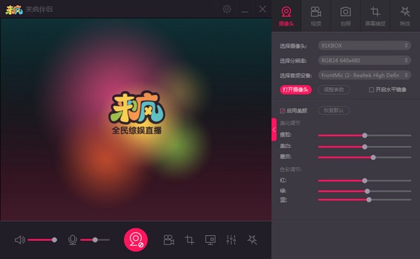 来疯直播伴侣是来疯直播为主播们开发的直播伴侣工具,专为来疯直播电脑版直播的主播打造,具有美颜特效、添加音频、批量粉丝互动的功能!