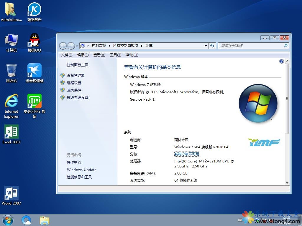 新雨林木风 Ghost Win7 x64 SP1 装机版 2018.04