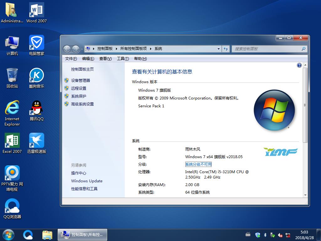 新雨林木风 Ghost Win7 x64 SP1 装机版 2018.05
